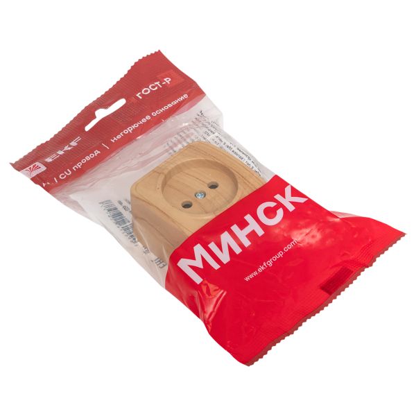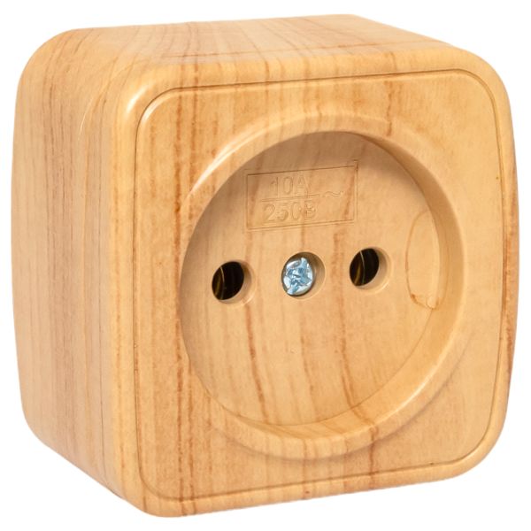 Розетка 1-местная ОП Минск 10А без заземления светлое дерево EKF |
