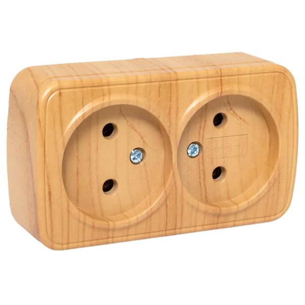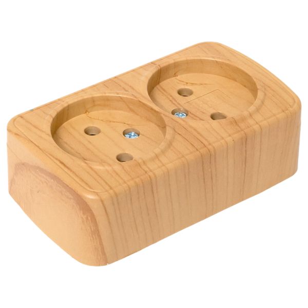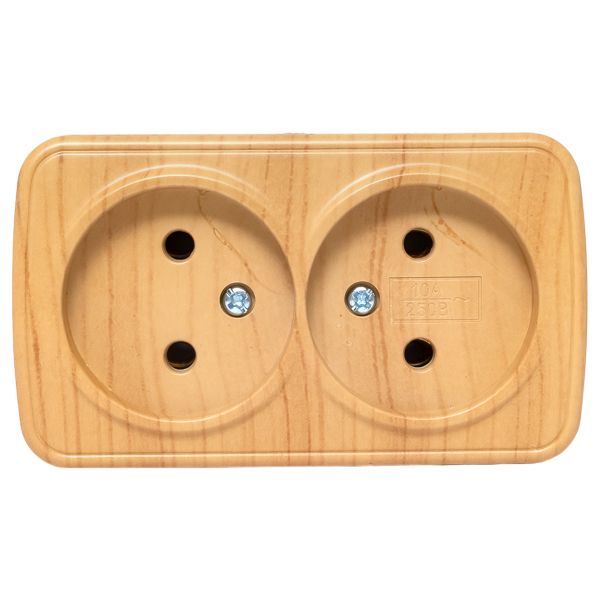 Розетка 2-местная ОП Минск 10А без заземления светлое дерево EKF |
