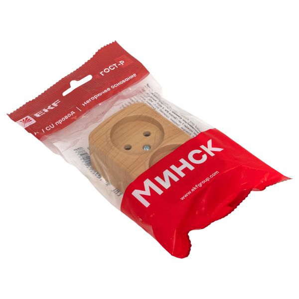 Розетка 2-местная ОП Минск 10А без заземления светлое дерево EKF
