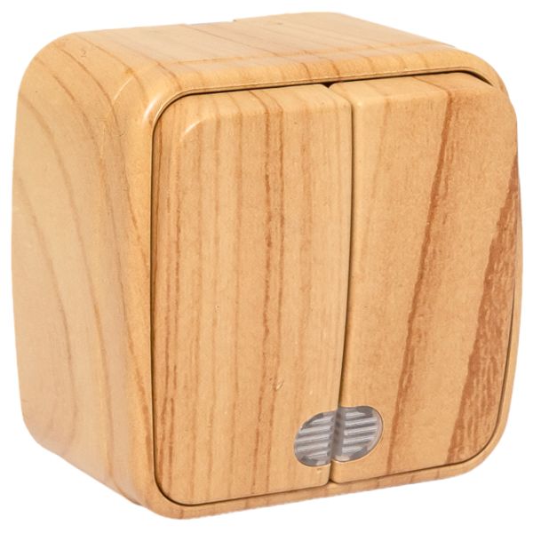 Выключатель 2-клавишный ОП Минск 10А с индикатором светлое дерево EKF |