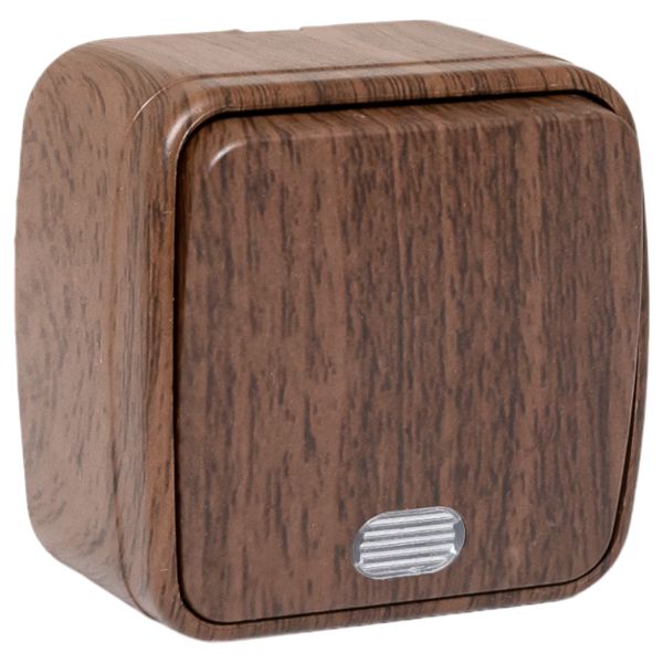 Выключатель 1-клавишный ОП Минск 10А с индикатором тёмное дерево EKF |