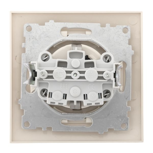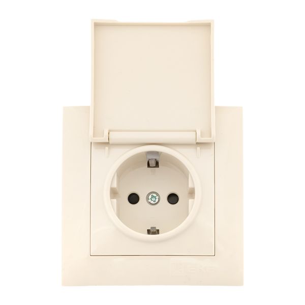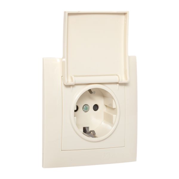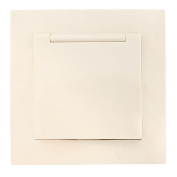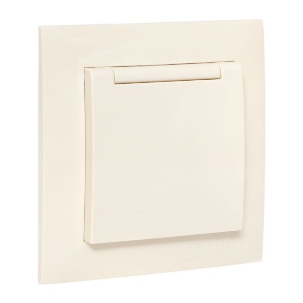 Валенсия розетка 1-местная с/з 16А кремовая с крышкой и защ. штор. EKF |