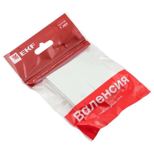 Лицевая панель двухклавишного проходного выключателя EKF серии Валенсия устанавливается на соответствующий механизм. Панель выполнена из поликарбоната, устойчивого к ультрафиолетовому излучении.