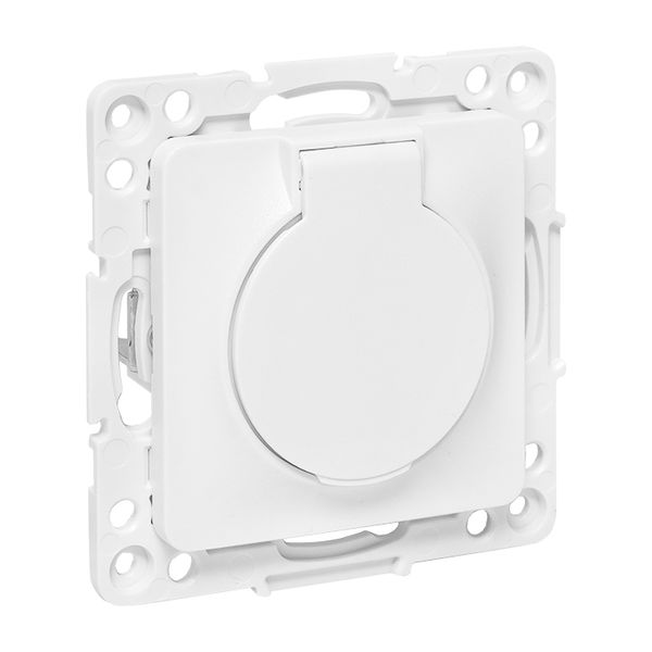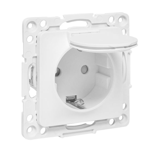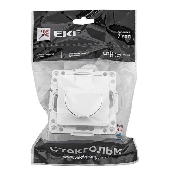 Стокгольм Механизм Розетки 1-местной с/з 16А автоматические клеммы белый с крышкой и защ. штор. IP44 EKF PROxima