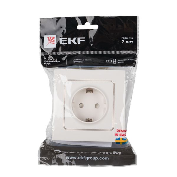 Стокгольм Розетка 1-местная с/з 16А автоматические клеммы белая с защ. штор. EKF PROxima |