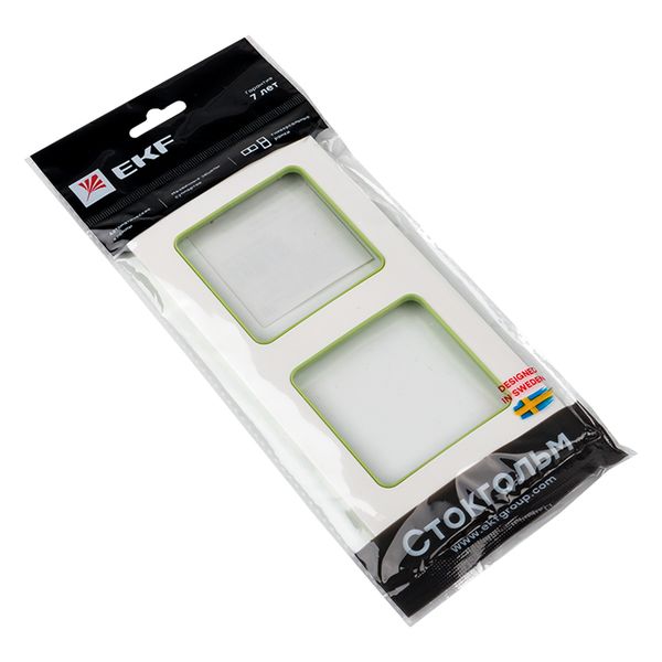 Стокгольм Рамка 2-местная белая с линией цвета зеленый EKF PROxima
