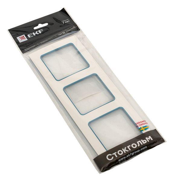 Стокгольм Рамка 3-местная белая с линией цвета синий EKF PROxima