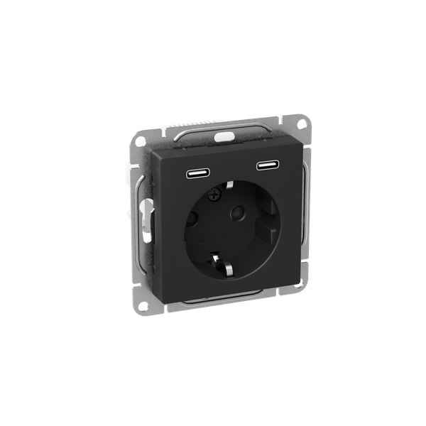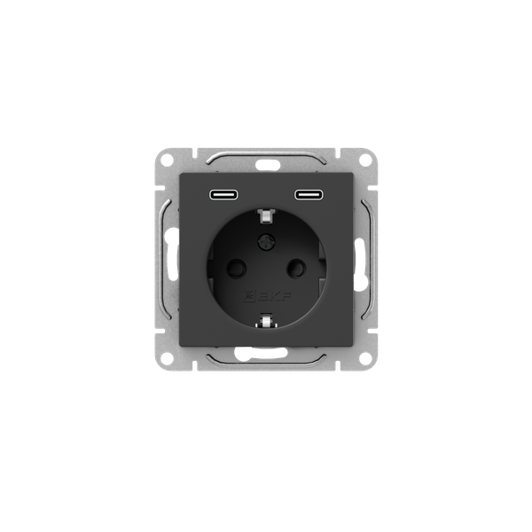Механизм розетки с USB-C - 2шт, 16А, с заземлением, со шторками, чёрный Эпика EKF |