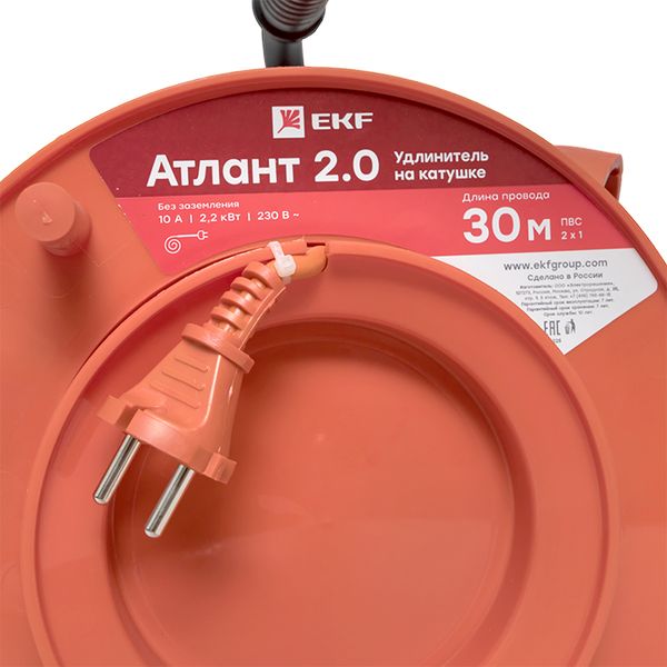 Удлинитель на катушке "Атлант 2.0" 1 гнездо 30м без заземления ПВС 2*1 10А/2,2кВт PROxima