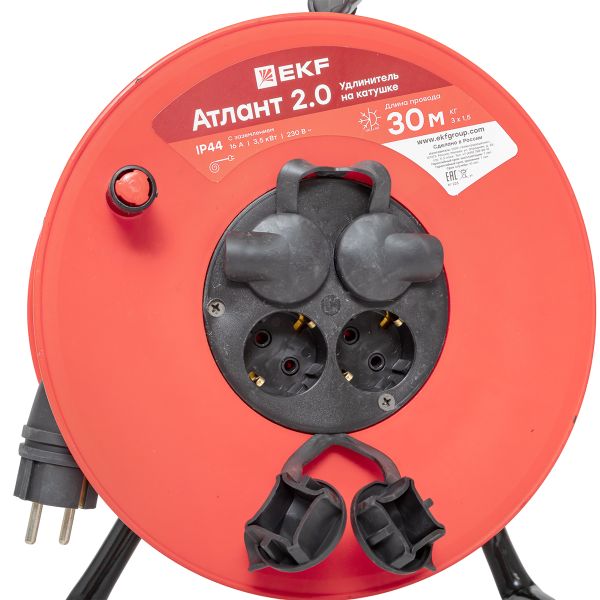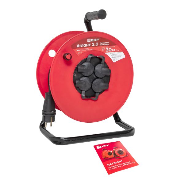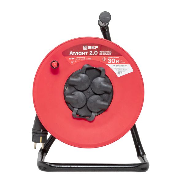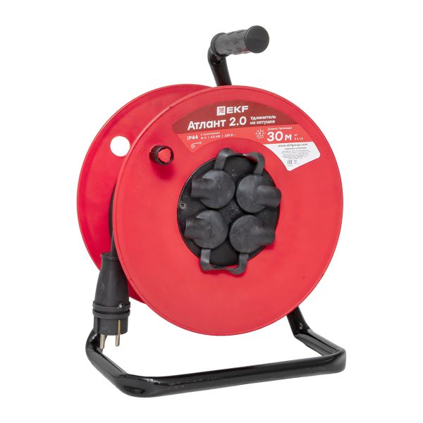 Удлинитель на катушке "Атлант 2.0" 4 гнезда 30м с заземлением КГ 3*1,5 16А/3,5кВт IP44 PROxima EKF