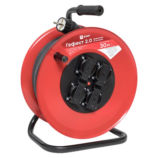 Удлинитель на катушке "Гефест 2.0" 4 гнезда 30м с заземлением и предохранителем КГ 3*2,5 16А/3,5кВт IP44 PROxima