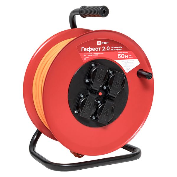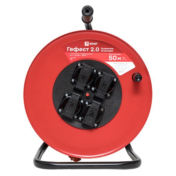 Удлинитель на катушке "Гефест 2.0" 4 гнезда 50м с заземлением и предохранителем КГ 3*1,5 16А/3,5кВт IP44 PROxima