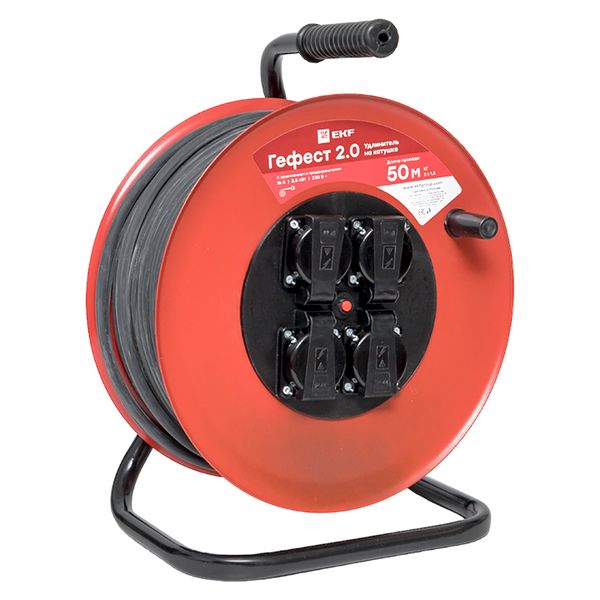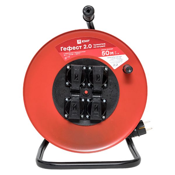 Удлинитель на катушке "Гефест 2.0" 4 гнезда 50м с заземлением и предохранителем ПВС 3*1,5 16А/3,5кВт IP44 PROxima