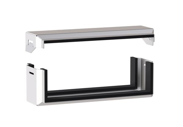 Накладка предназначена для обеспечения герметизации трассы металлических неперфорированных лотков с крышкой до степени IP44. Применяется при размещении кабельных трасс вне зданий или в помещениях с повышенной влажностью.