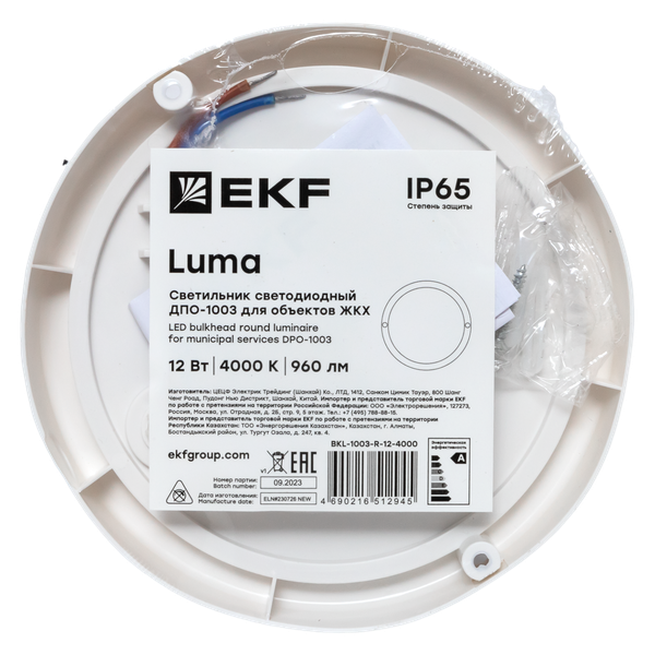 Светильник светодиодный ЖКХ круг ДПО-1003 12Вт 6500K IP65 LUMA EKF |