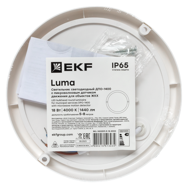 Светильник светодиодный ЖКХ круг ДПО-1400 с микроволновым датчиком движения 18Вт 6500K IP65 LUMA EKF |