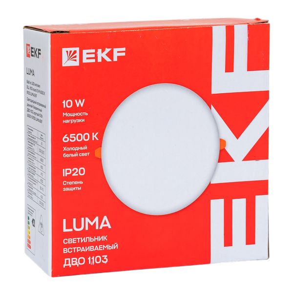 Светодиодный встраиваемый даунлайт безрамочный ДВО 1103 круглый 10Вт 6500K IP20 LUMA EKF |