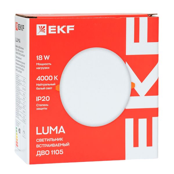 Светодиодный встраиваемый даунлайт безрамочный ДВО 1105 круглый 18Вт 4000K IP20 LUMA EKF |