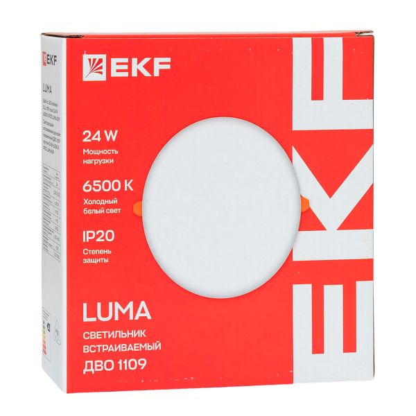 Светодиодный встраиваемый даунлайт безрамочный ДВО 1109 круглый 24Вт 6500K IP20 LUMA EKF