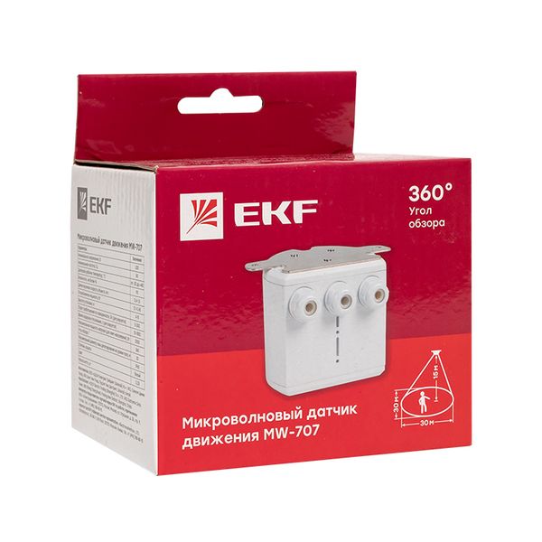 Микроволновый датчик движения бел. для высоких потолков 2000Вт 360гр. 30м IP65 MW-707 EKF