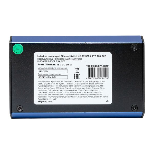 Промышленный неуправляемый коммутатор U-2GX/SFP-8GTP, 2 порта 1000Base-X SFP, 8 портов 10/100/1000Base-T(X) RJ45 c PoE, монтаж на динрейку TSX EKF |