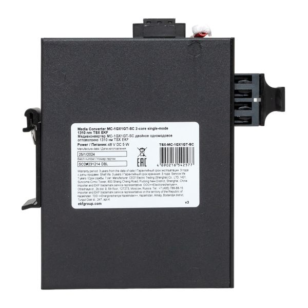 Медиаконвертер 10/100/1000Base-TX в 1000Base-X, разъем SC, двойное одномодовое оптоволокно, 1310нм TSX EKF |