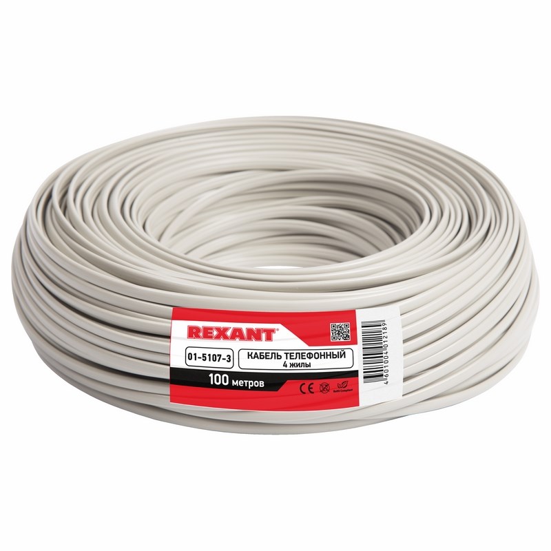 Телефонный кабель ШТЛП REXANT 4 жилы CCA, серый, бухта 100 м