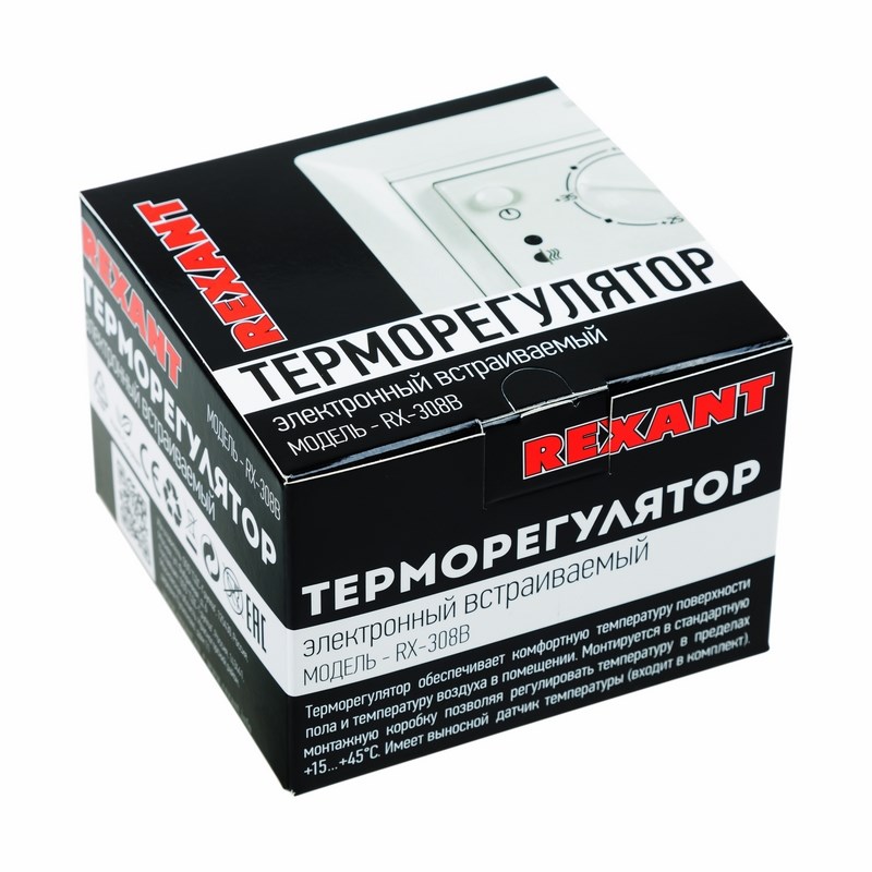 Электронный термостат RX-308B встраиваемый, корпус белый, диапазон регулировок +15°C/+45°C, коммутируемый ток контактов 16 A, внешний датчик температуры 10 кОм.