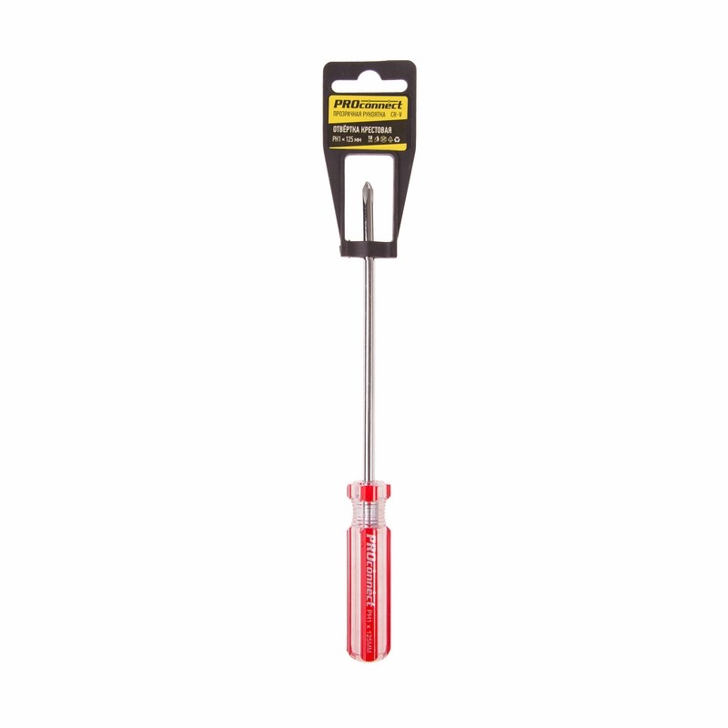 Отвертка крестовая PH 2х125 мм, прозрачная рукоятка PROconnect |