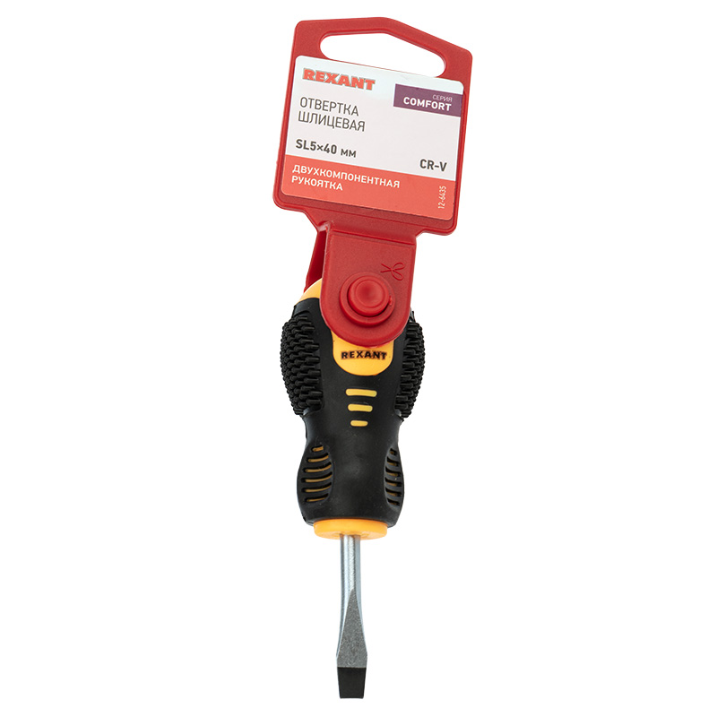 Отвертка шлицевая SL 5х40 мм, двухкомпонентная рукоятка REXANT