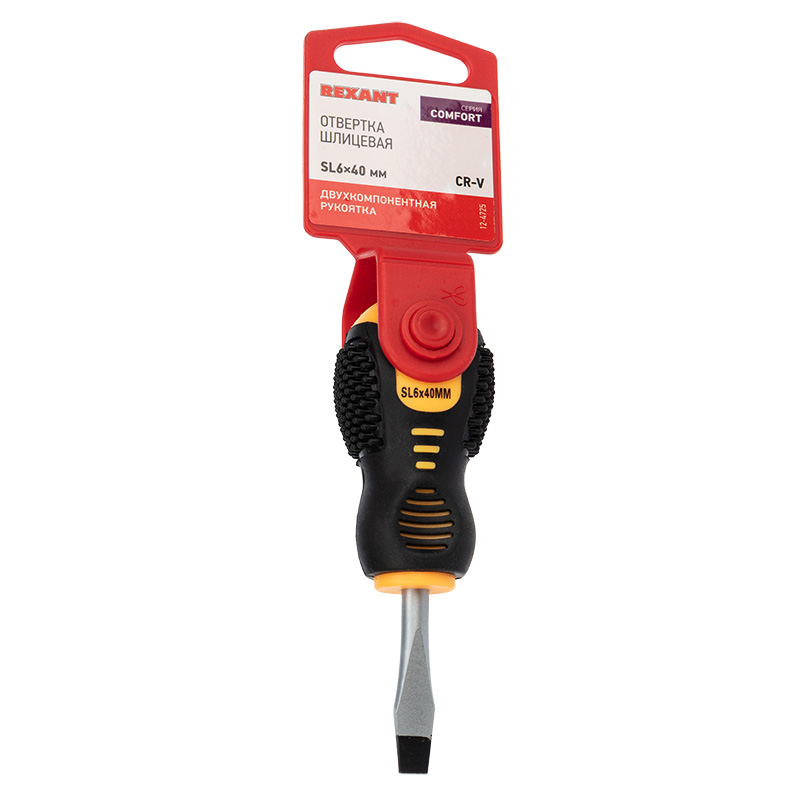 Отвертка шлицевая SL 6х40 мм, двухкомпонентная рукоятка REXANT