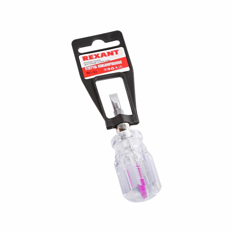 Отвертка комбинированная, прозрачная рукоятка, двухсторонний стержень 40 мм (крестовая PH 2, шлицевая SL 6 мм) REXANT |
