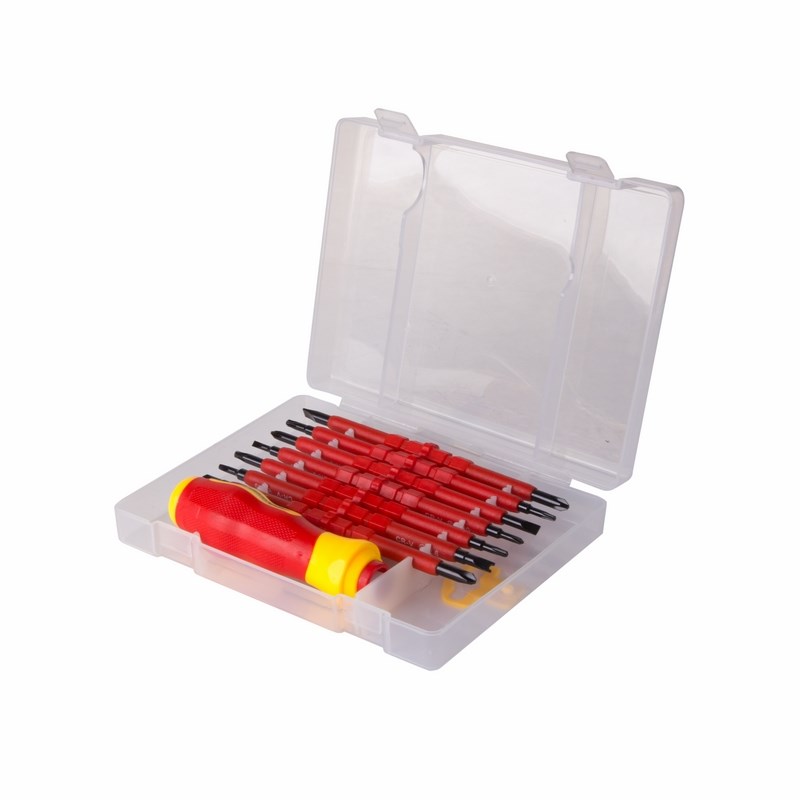 Двухсторонние стержни отвертки из высококачественной хромованадиевой стали с оксидированным намагниченным наконечником, покрыты специальным изоляционным материалом.