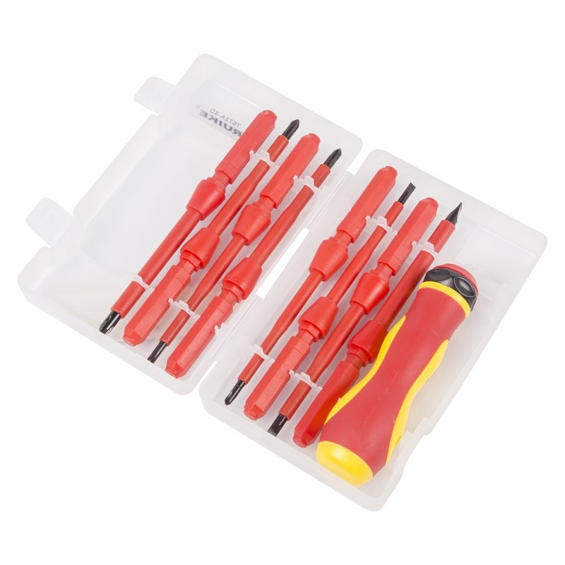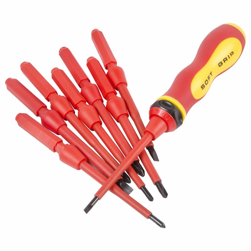 Стержень отвертки из высококачественной хромованадиевой стали с оксидированным намагниченным наконечником покрыт специальным изоляционным материалом.