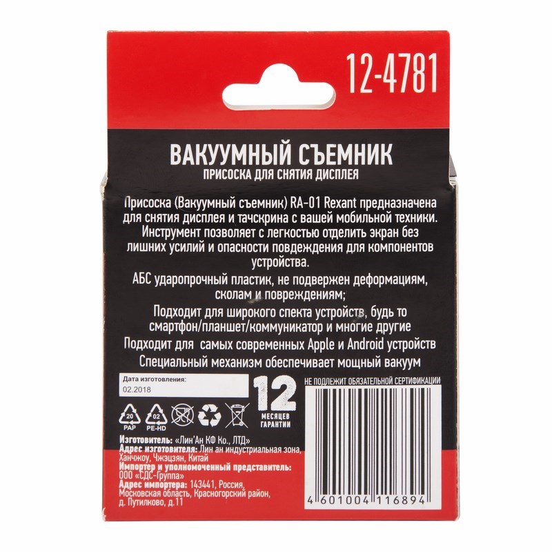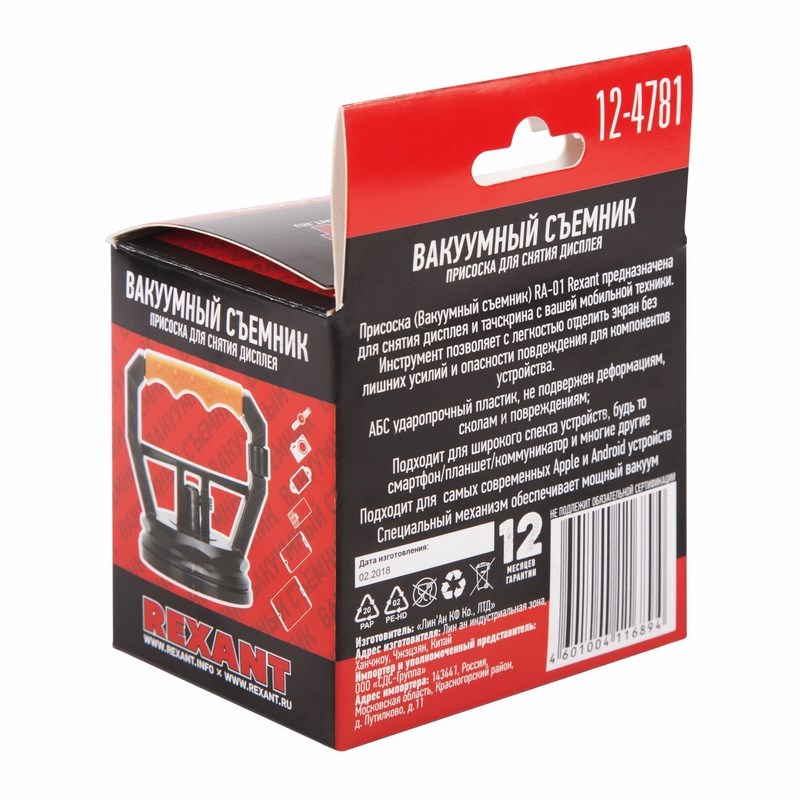 Присоска (вакуумный съемник) RA-01 REXANT предназначена для снятия дисплея и тачскрина с ваших мобильных устройств. Устройство позволяет с легкостью отделить экран без лишних усилий и опасности повреждения для компонентов устройства.