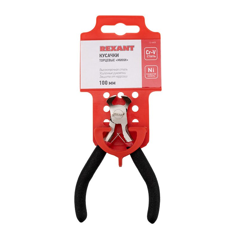 Кусачки торцевые REXANT Мини 100 мм никелированные, авторазжим, обливные рукоятки