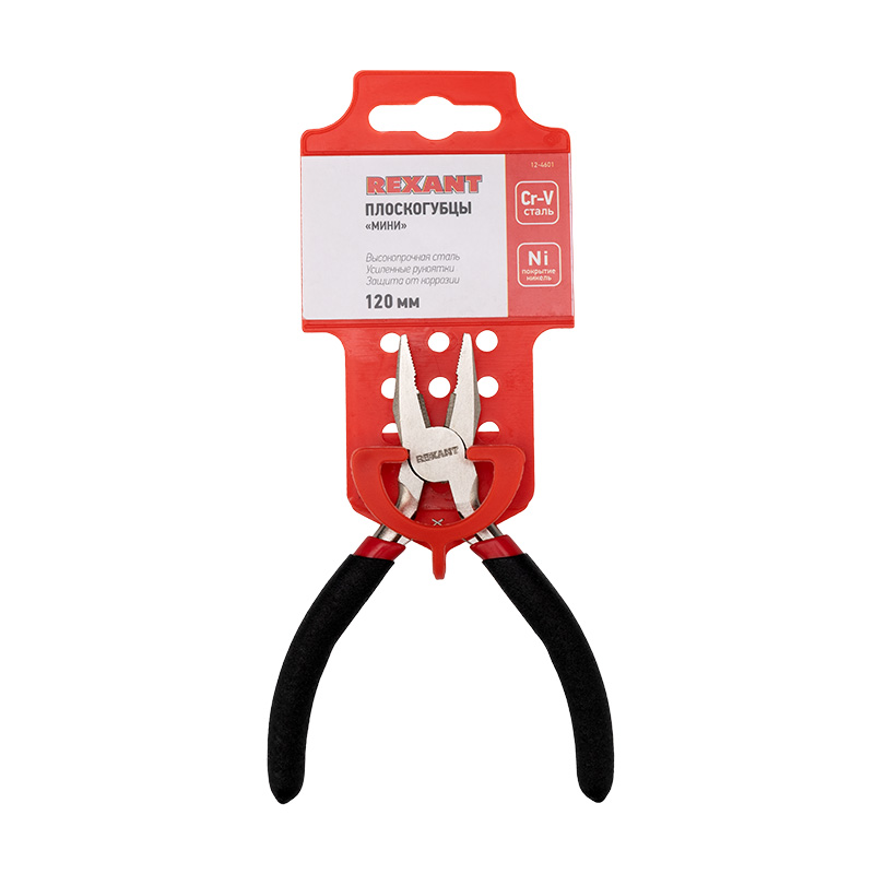 Плоскогубцы REXANT Мини 120 мм никелированные, авторазжим, обливные рукоятки