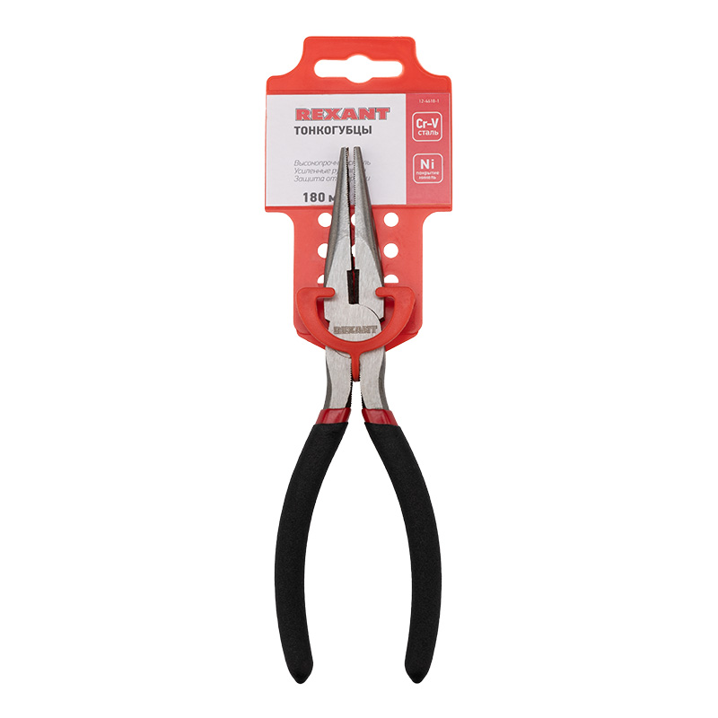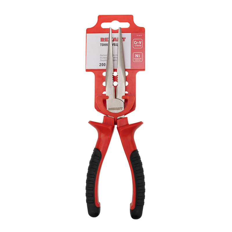 Тонкогубцы REXANT 200 мм никелированные, двухкомпонентные рукоятки