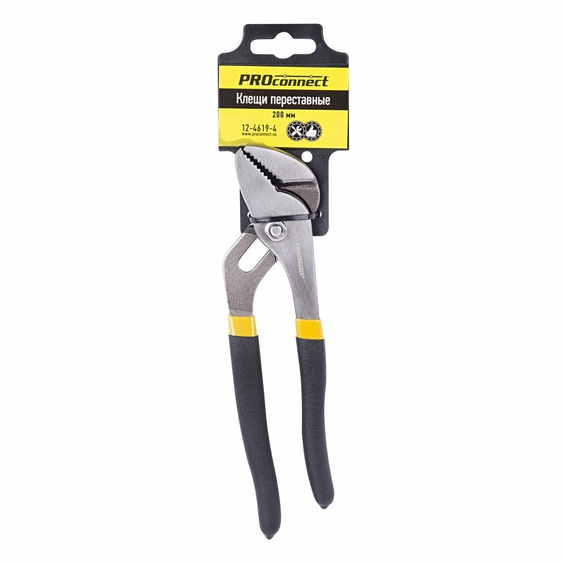 Клещи переставные 200 мм PROconnect — инструмент используемый для захвата различных деталей и элементов во время проведения столярно-слесарных, сборно-разборных и других работ.