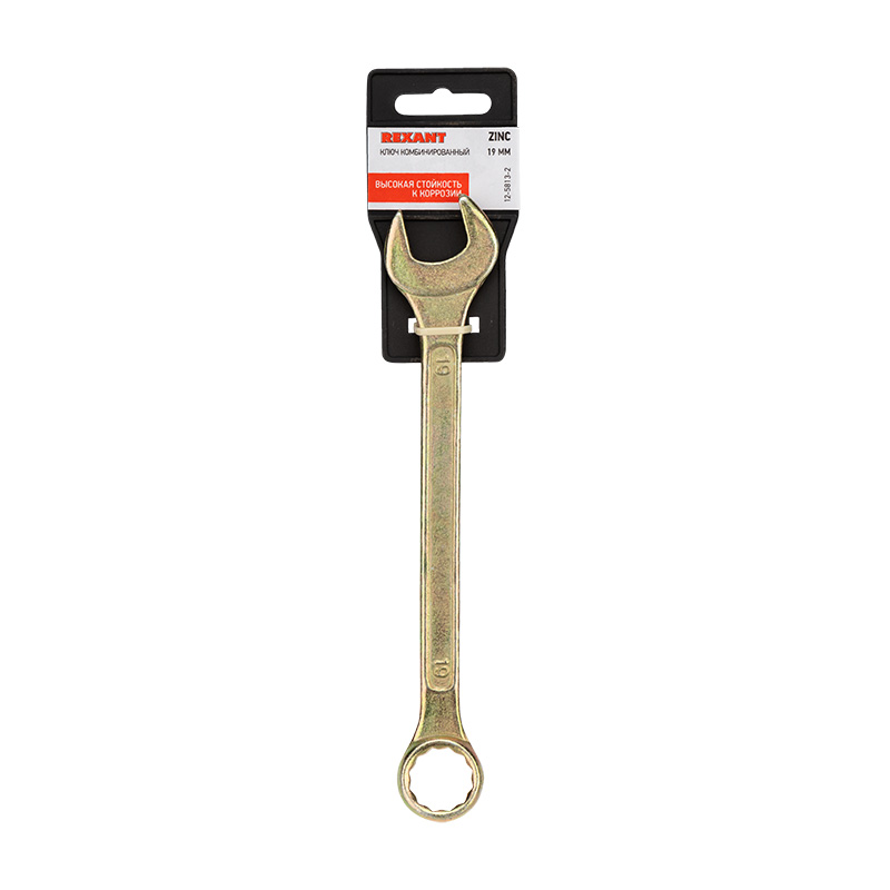 Ключ комбинированный REXANT 19 мм, желтый цинк |