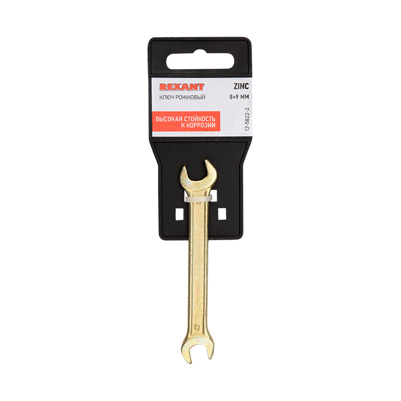Ключ рожковый REXANT 8х9 мм, желтый цинк |
