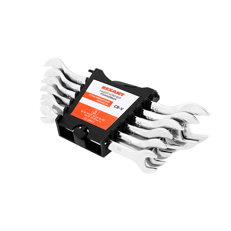Набор ключей рожковых REXANT (8-19 мм), 6 шт., CrV, зеркальное хромирование |