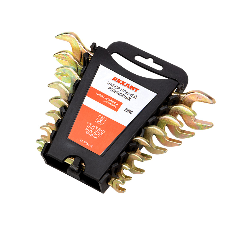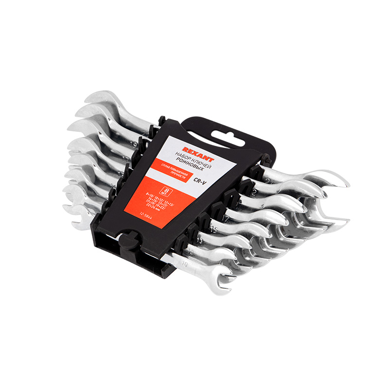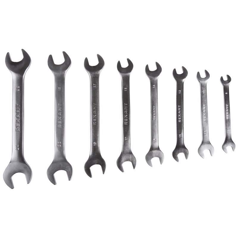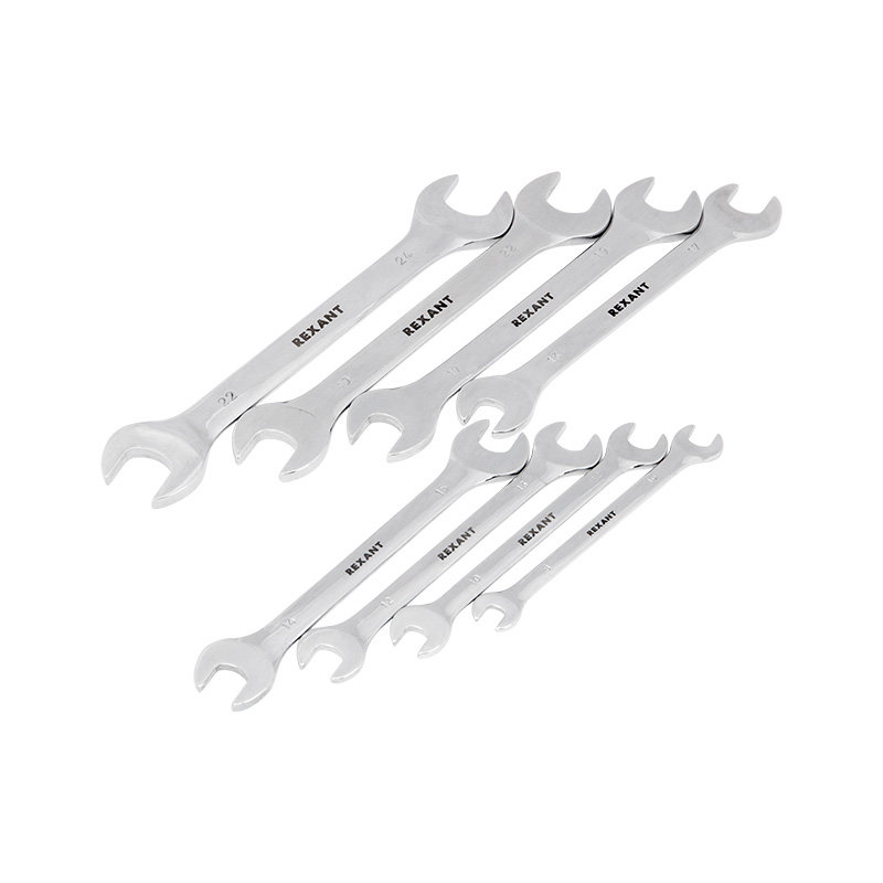 Набор ключей рожковых REXANT (8-24 мм), 8 шт., CrV, зеркальное хромирование |