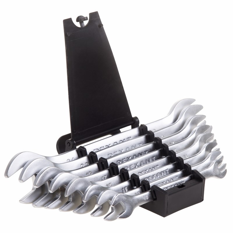Набор ключей рожковых REXANT (8-24 мм), 8 шт., CrV, зеркальное хромирование