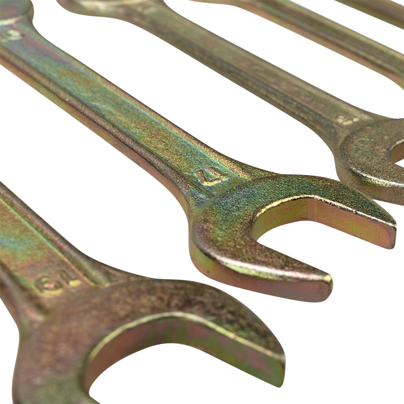 Набор ключей рожковых гаечных предназначен для монтажа и демонтажа резьбовых соединений. С обеих сторон ключа расположен захват открытого типа.