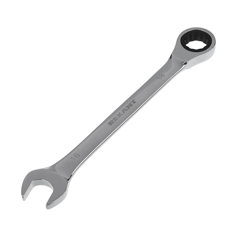 Ключ комбинированный трещоточный REXANT 18 мм, CrV, зеркальный хром |