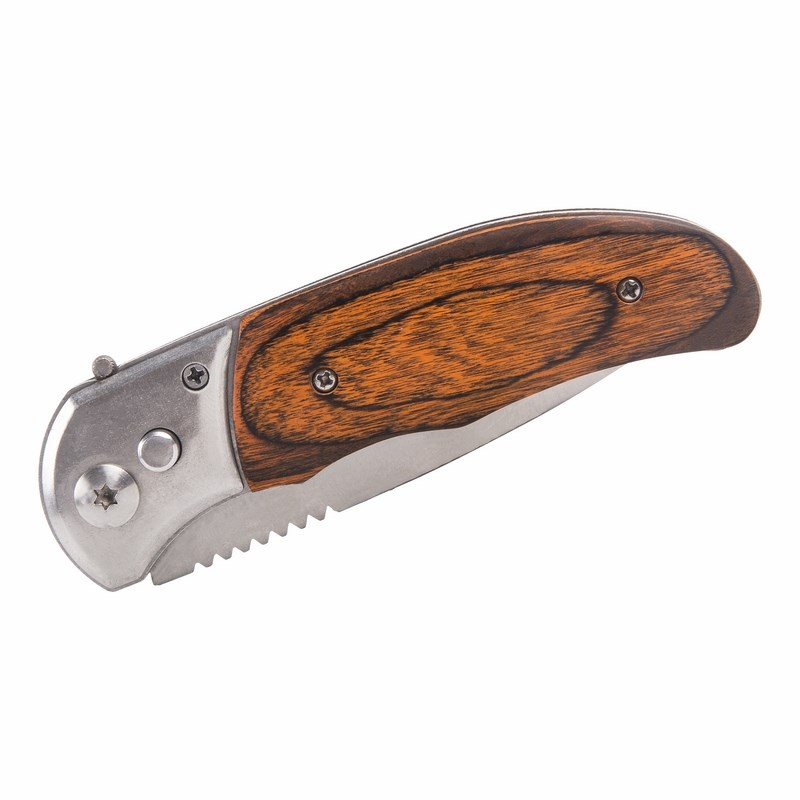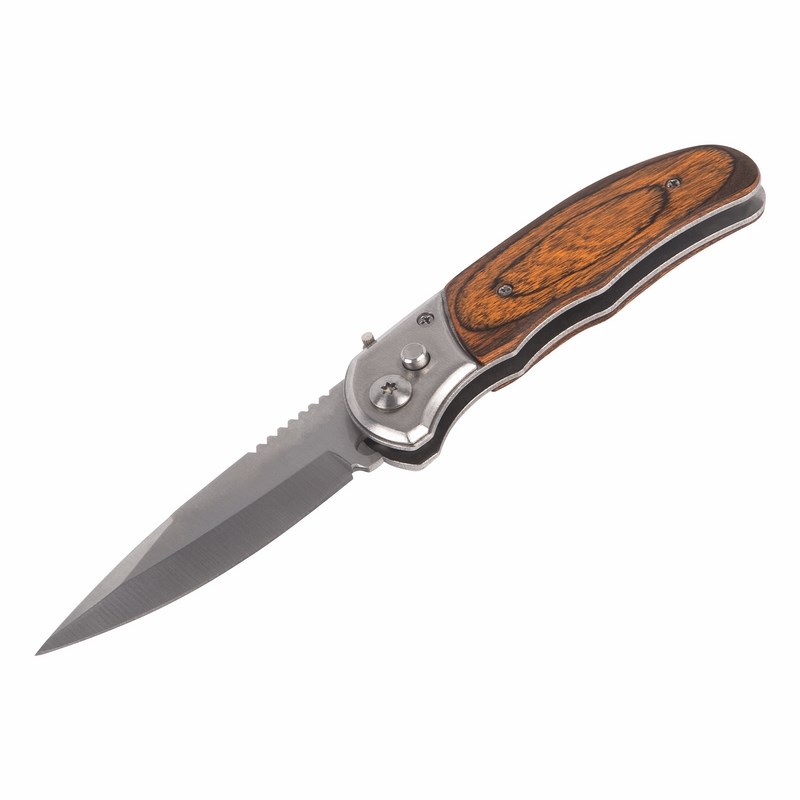 Лезвие изготовлено из стали SK5, фиксируется автоматически. На лезвии дополнительный замок.
