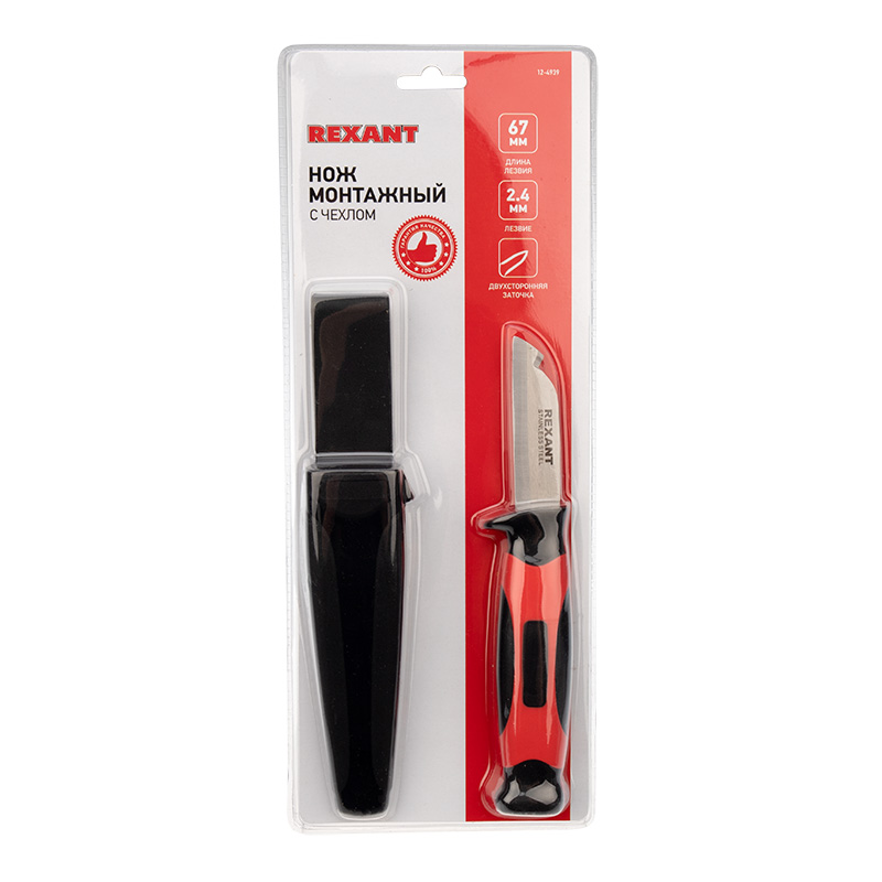 Нож монтажника с чехлом лезвие 67 мм Rexant |
