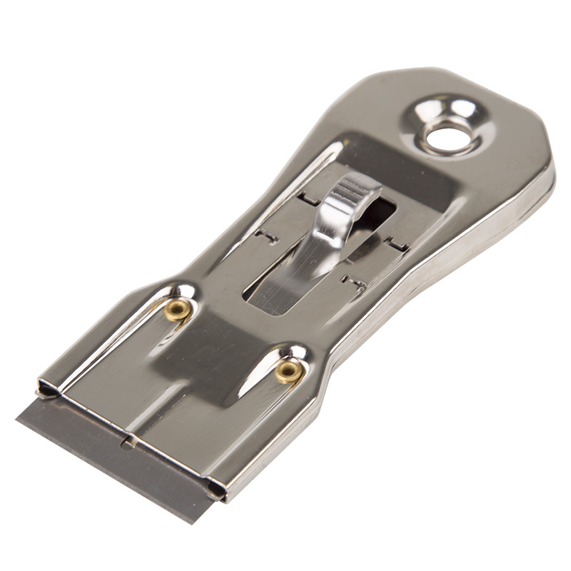 Скребок выполнен из нержавеющей стали, компактный корпус, выдвижное лезвие продлевает срок службы инструмента, а также обеспечивает безопасное хранение и транспортировку.