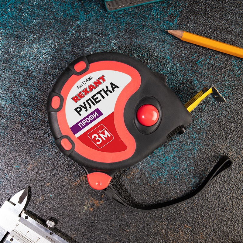 Рулетка измерительная «Профи» REXANT, прорезиненный корпус, 3 м х 16 мм |